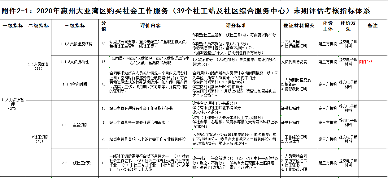 2020年惠州大亚湾区购买社会工作服务(39个社工站及社区综合服务中心)过程监测考核指标体系