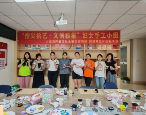 手工制作不仅是传统文化的传承载体,更是帮助妇女提升技能、增加收入、实现自我价值的有效途径。并根据霞涌本地旅游市场发展,打造具有地方特色的手工文创品牌,增强妇女的自信心和社会认同感,促进妇女群体的自我发展和成长。在大亚湾社会事务管理局支持下,由惠州市公民伙伴社工服务中心运营的霞涌街道第三片区社工点开展了共五节的“指尖拾艺·文创雅集”妇女手工小组。小组吸引了多名手工爱好者参与。